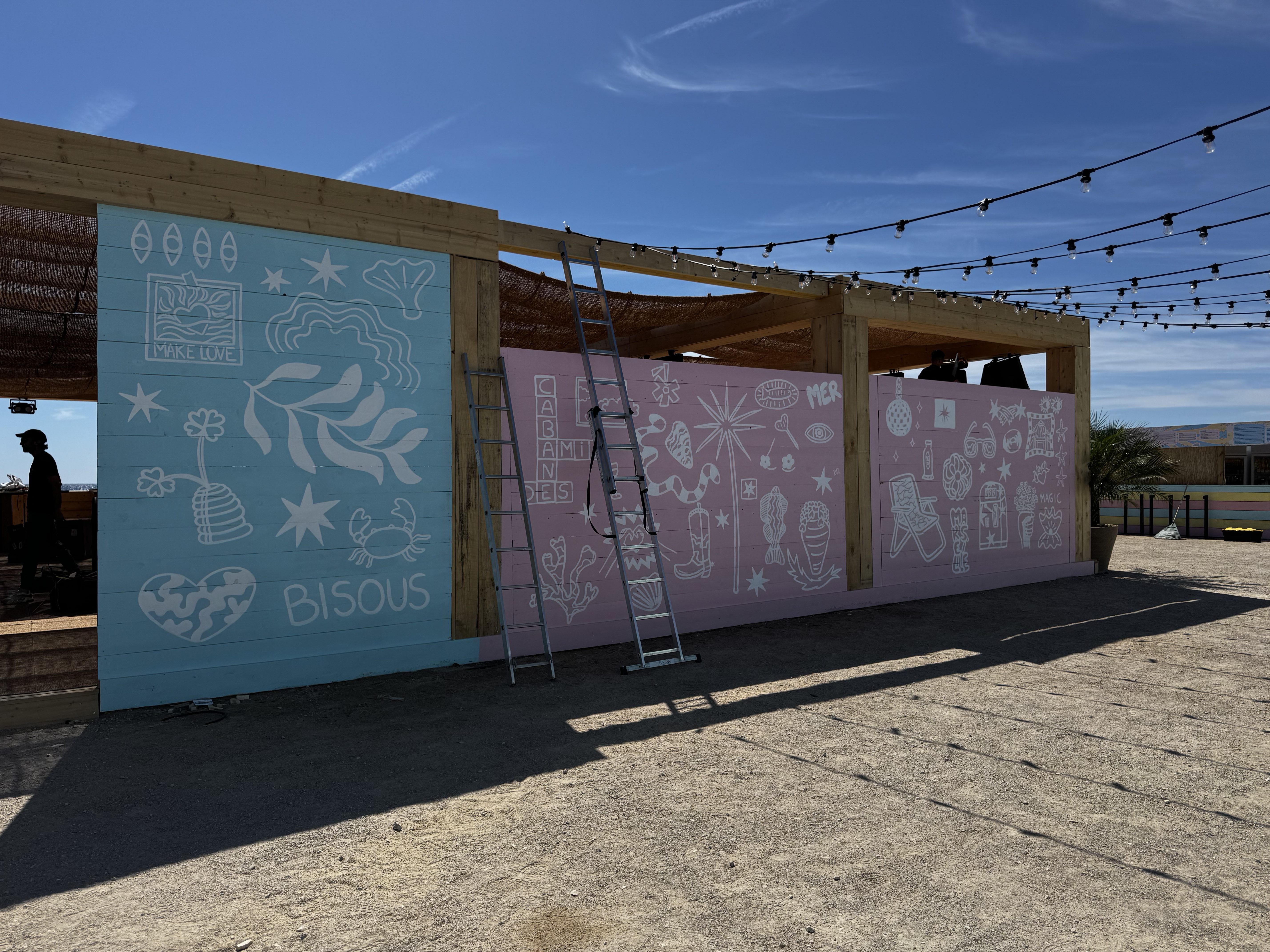 Entre affiches colorées, plv sur site, cartes des boissons, visuels pour les réseaux sociaux et fresques éphémères, chaque création a été pensée pour insuffler de la joie, capter les regards et prolonger l’ambiance unique des longues soirées d’été à la Cabane.